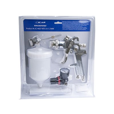 Краскопульт пневматический ICAR 827Kit с верхним бачком 600мл, набор, сопло 1.4мм+1.7мм IC-H827-Kit(1.4+1.7)MM можно купить по выгодной оптовой цене. Забрать товар можно самовывозом со склада-магазина в Дмитрове или выбрать доставку по Кувандыку транспортной компанией при оформлении заказа.