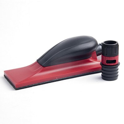 Шлифовальный блок с пылеотводом специально разработан для работы с абразивными материалами на липучке. Шлифблоки соединяются со шлангом системы пылеудаления для обеспечения беспыльного шлифования. Шлифовальные блоки с пылеотводом применяются для шлифования "по сухому" шпатлевок и ремонтных грунтов.